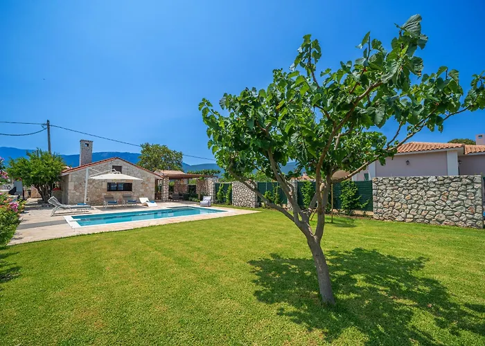 Stunning Tranquil Villa With Private Pool is set in Sami, around 4 km from Karavomilos Lake and boasts a dining table provided on a terrace. This accommodation features 1 bedroom, a fully-equipped kitchen and 1 bathroom.